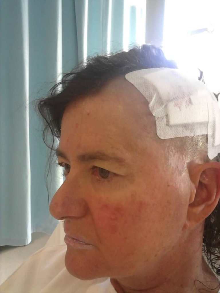Then the Neuro surgeon literally ripped of the plasters and cut something with a scalpel on my head. I head the scraping in my bone and the pain.